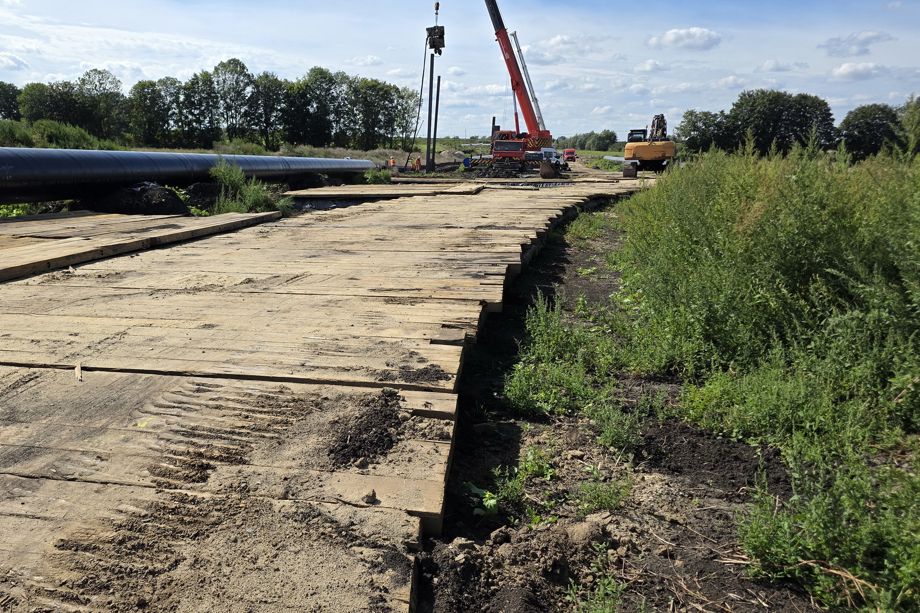 Efekt? Stabilna droga, po której swobodnie porusza się ciężki sprzęt. Bez zapadania, bez ugrzęźnięcia. Podobne rozwiązania stosujemy przy budowie dróg tymczasowych w całej Polsce.