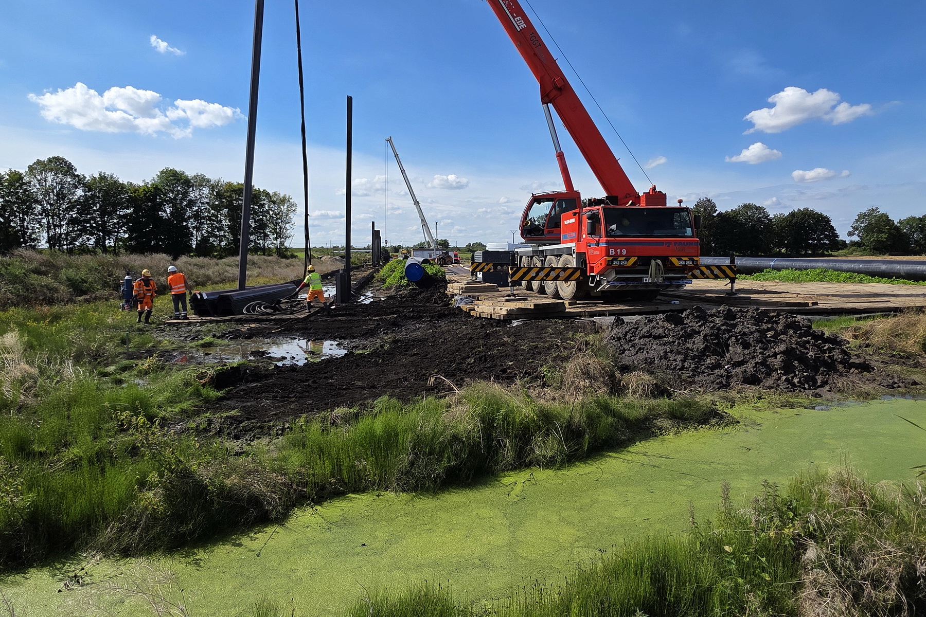 Najlepiej pokazać to na konkretnym przykładzie. Na realizacji widocznej na zdjęciach na górze artykułu mieliśmy do czynienia z gruntem bagiennym, podmokłym, z widocznymi kałużami i błotem – ekstremalne warunki dla każdej budowy.